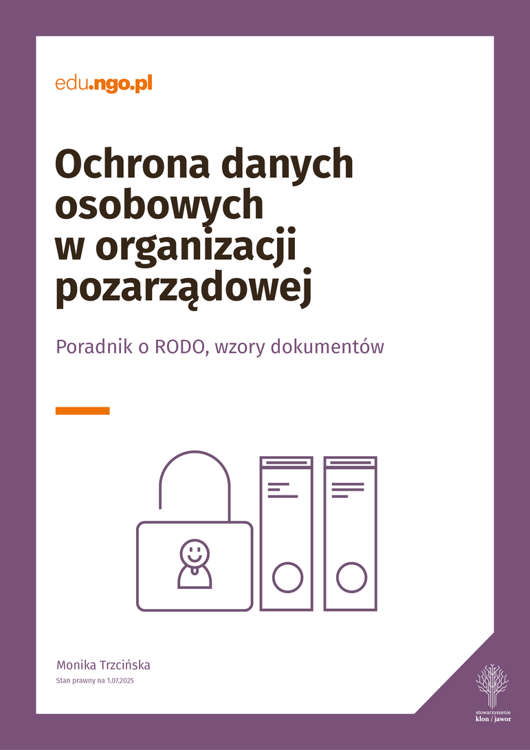 Ochrona danych osobowych w organizacji pozarządowej. Poradnik o RODO, wzory dokumentów